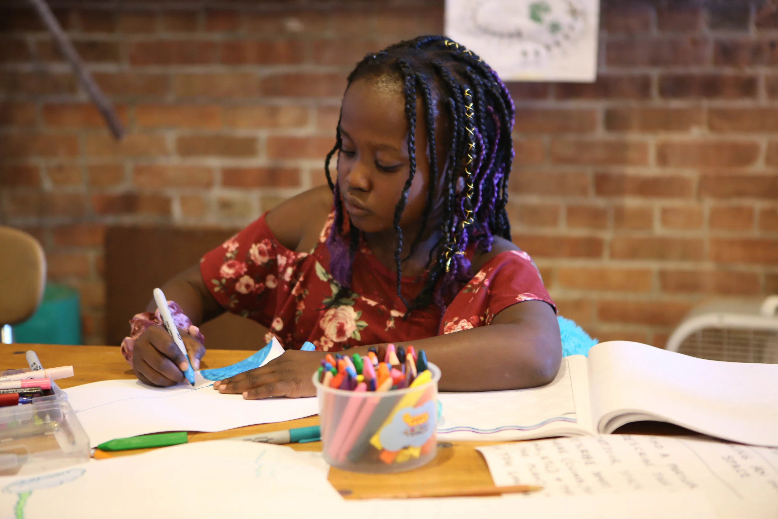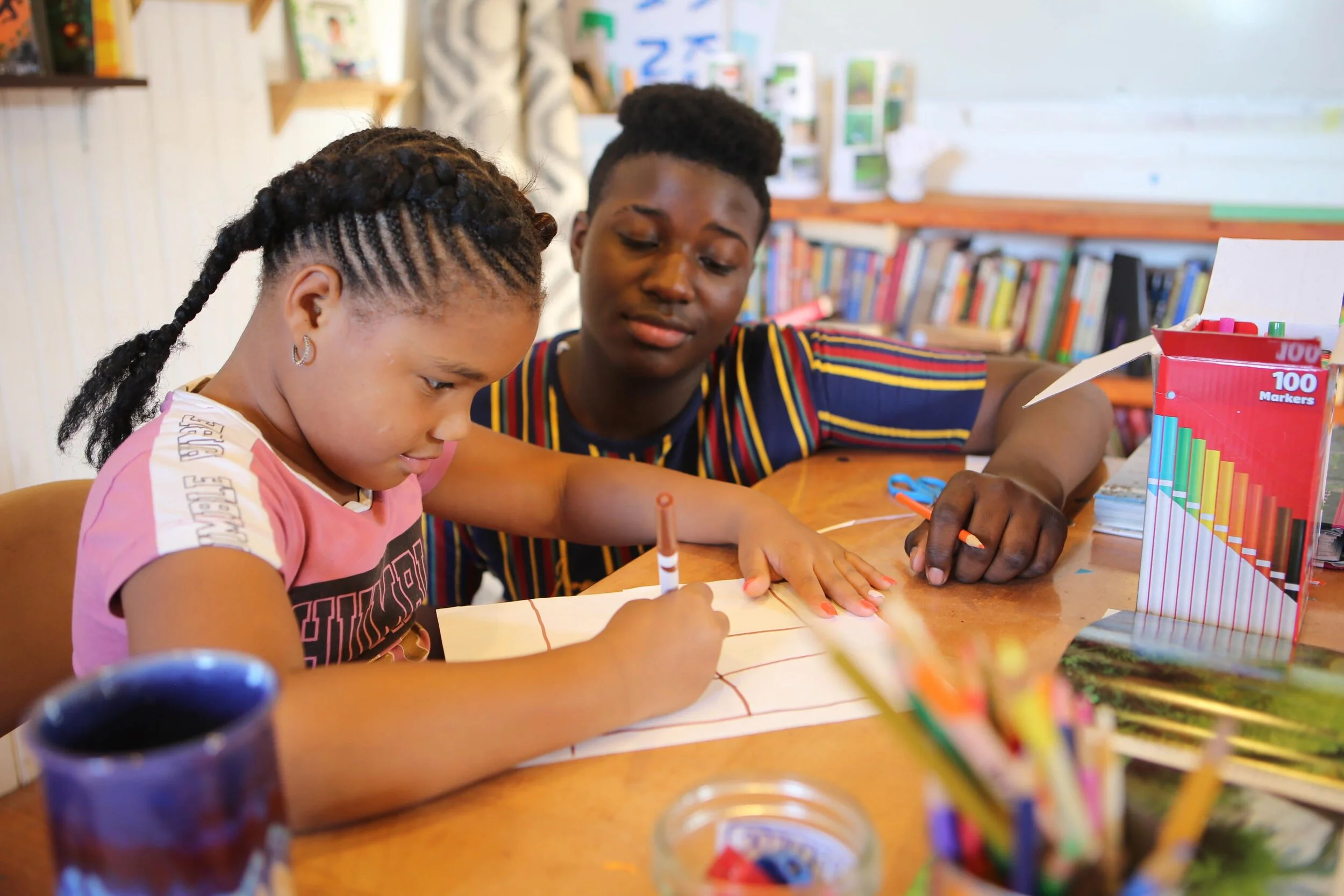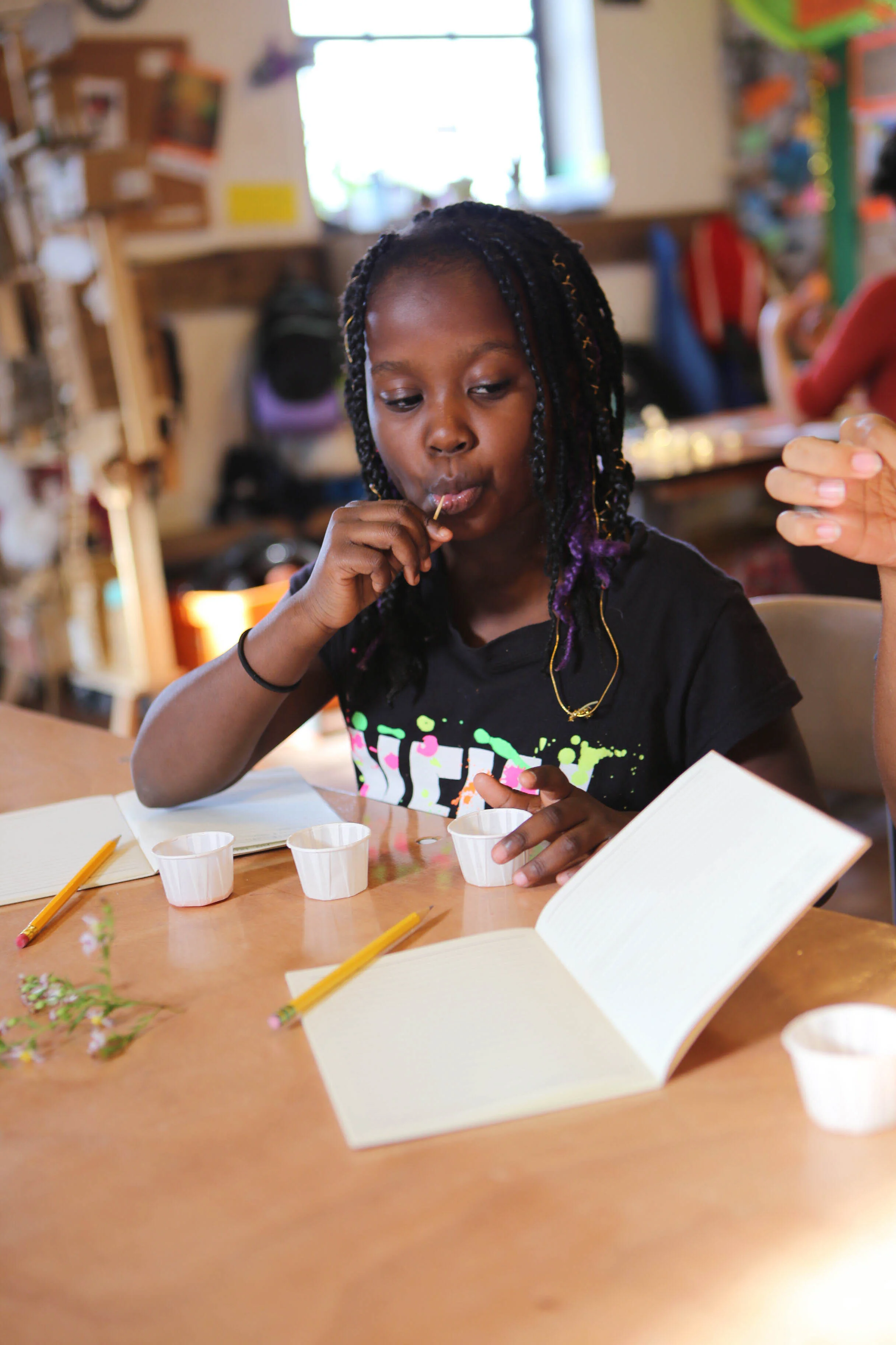 In this weekly creative movement and writing space, we told stories with our bodies, our voices, and our pens. Each week we played movement games -- practicing yoga poses, doing vocal exercises, closing our eyes to imagine worlds of characters, and acting out stories as they’re told. Together we watched and discussed different types of storytelling, including spoken word, music videos, animation, and shadow dance. We traveled to Mettabee Farm and Arts, where we learned the West African “Kuku” dance to live drumming. And we created our own written pieces: like a Book of Feelings to explore the worlds of our emotions, and ancient scrolls adorned with quotes and poems. We also discussed the “inner critic” inside each of us, brainstorming ways to combat it. At the end of class each week, we shared our works of art and our observations, recognizing and celebrating each others’ creations.