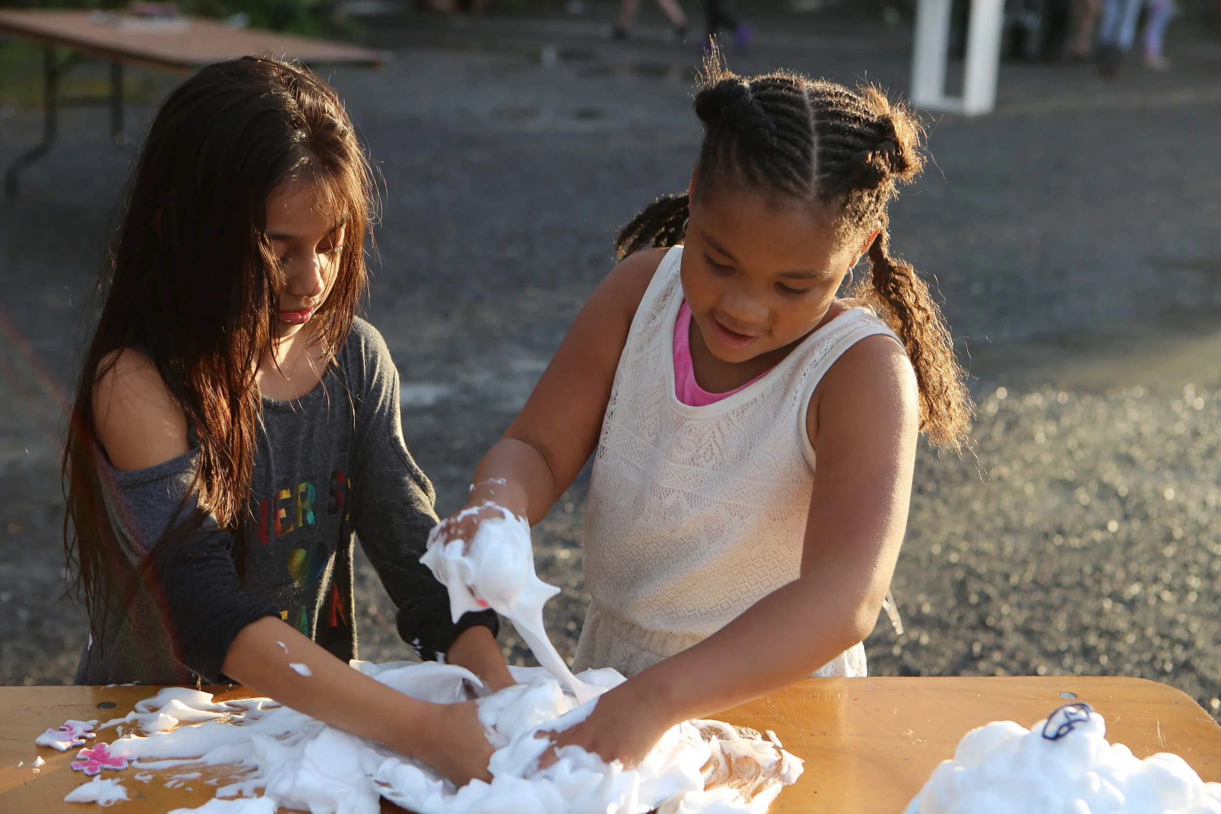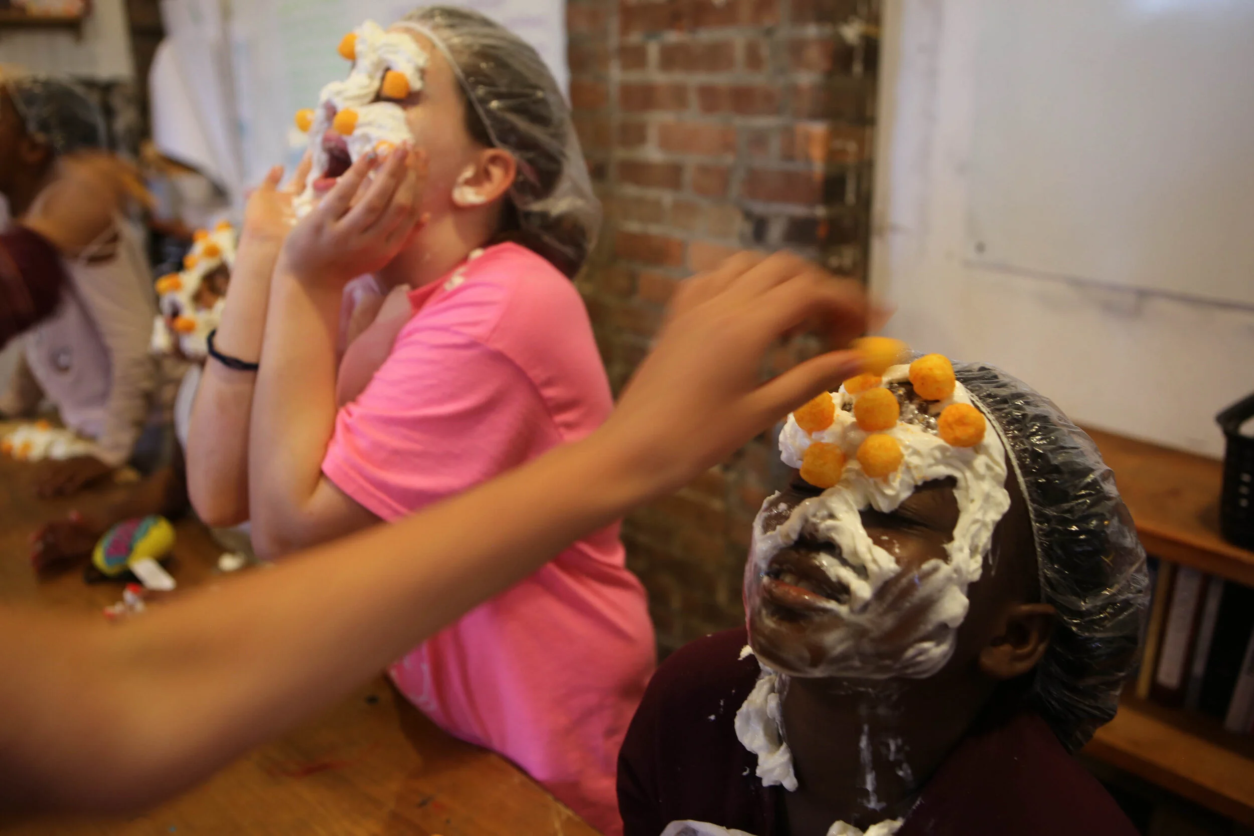 For 3-hours each week, we transformed Kite’s Nest into a fitness circuit club: we did circuit training, jumped on trampolines, threw medicine balls, ran coordination drills and balanced on exercise balls, all while listening to our favorite soundtracks of 2019. To cool down, the group developed a multilingual countdown, with each student sharing a stretch and counting in their family language or a language they were learning in school: collectively we stretched in Spanish, Haitian Creole, Arabic and Korean. We also enacted some of our favorite obstacle course TV shows: we had our own “Amazing Race” by traveling to bodegas and playgrounds in Hudson. We had our own “Double Dare,” digging through pie tins of shaving cream for puzzle pieces and squeezing out buckets of sponges on our heads. On other days we explored obstacle courses in the area: playing putt putt golf and running through corn mazes. On our final day students built on their experience to make their own obstacle courses, using the key features of agility, focus, aim, speed, strength, coordination, memory, and balance - and of course, teamwork, mutual support, and joy.