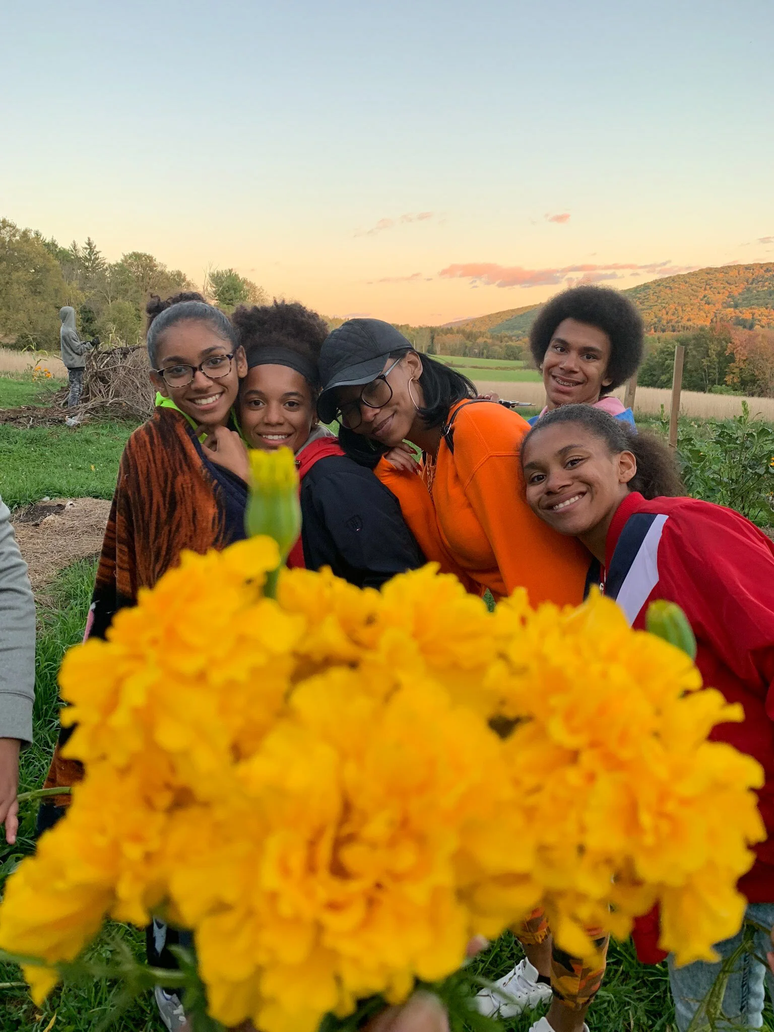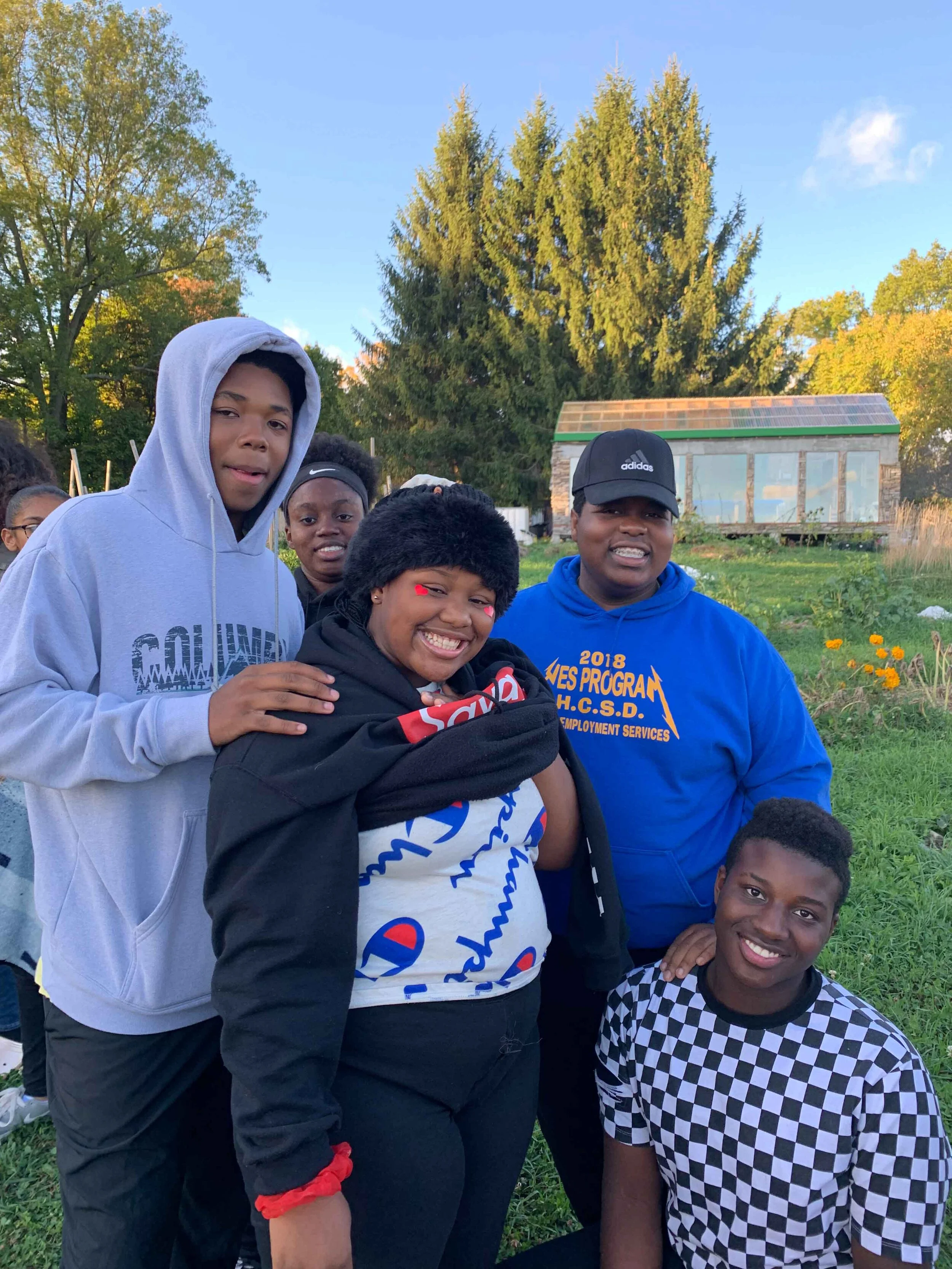 This Fall semester, the ReGen Garden Teens adventured up and down the Hudson River watershed, visiting other urban garden projects and gathering innovative eco-resilience knowledge and skills. Our program kicked off in Hudson when we hosted 40 teens and food justice educators at the River City Garden, and together made herbal medicine, played lawn games and shared a homemade meal on a gorgeous sunny day. A month later we went to the Kingston YMCA Farm Project site to convene with the same teen group and learned about language justice and access, built greenhouse tables for new seedlings, and prepared annual and perennial garden beds for winter. In preparation for the launch of the ReGen Teen’s first business venture, we spent over 30 hours clearing the former compost dump site and building safe and accessible disposal containers for the public disposal of food scraps. To inform our project, we also visited the Radix Ecological Sustainability Center in Albany to research their vibrant urban food forest with ducks, chickens, aquaponics and bees! Between visits to our neighbors’ gardens, we hiked and explored Beebe Hill with field guides, cooked rainbow-colored meals with local meat and vegetables and packed with myriad nutrients, brewed fire cider medicine to keep away winter germs, and invited 10 additional teens to participate in our weekly work sessions.