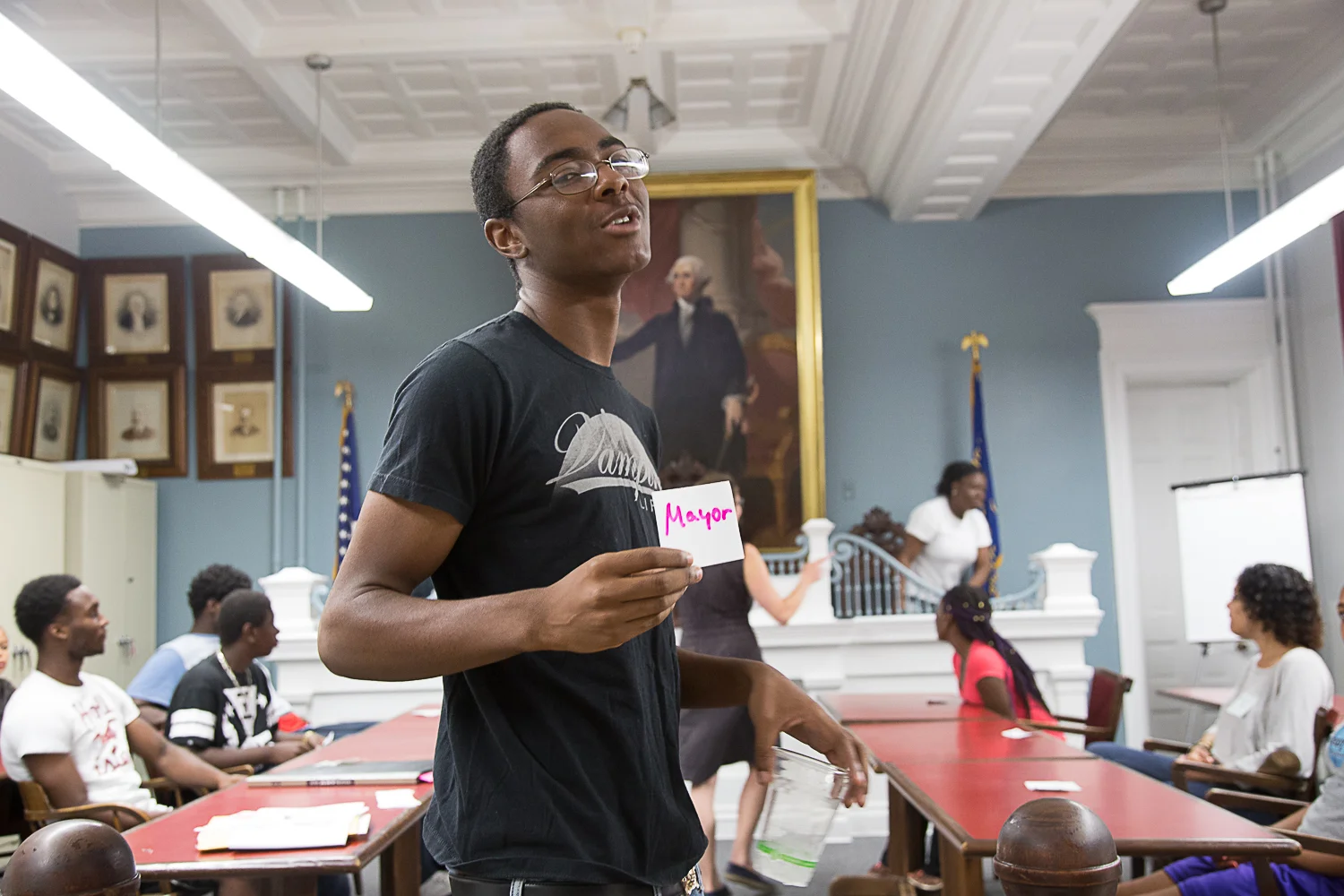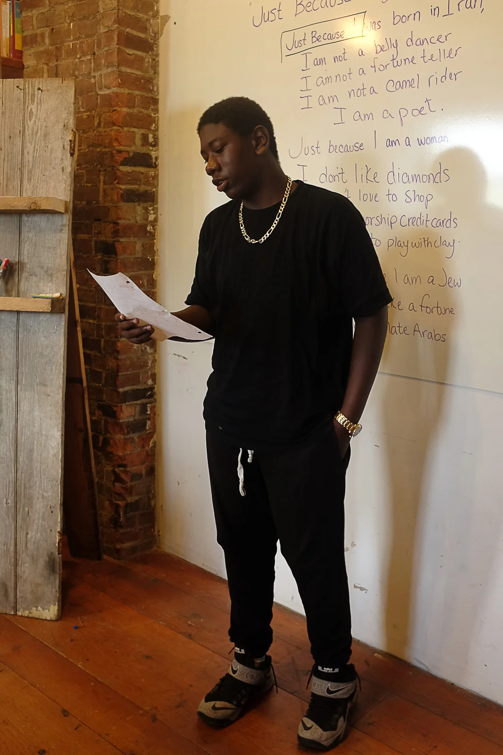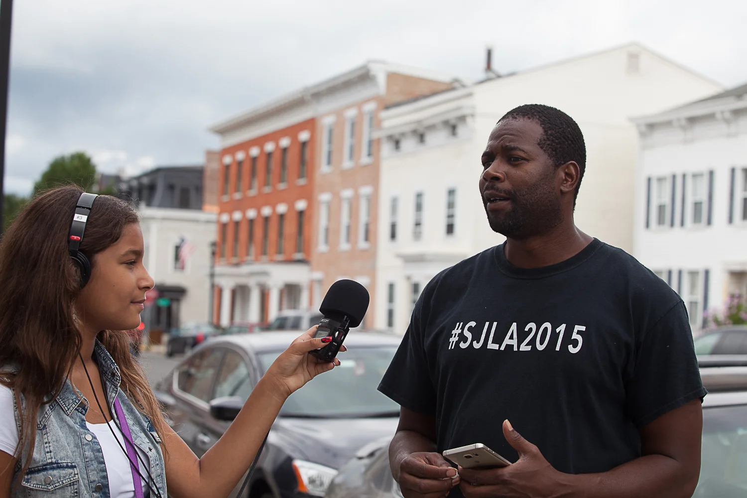 SJLA youth chose special topics to explore, research, and to prepare a teach-back around, sharing what they learned with other youth. Their workshops were called: Sexual Violence & Consent; Debunking the Myths and Telling Our Stories: Immigration; College 101; Absent Fathers; and Show Who You Are: Media and the Message. This week we also headed out to record on-the-street interviews in Hudson, asking people questions about what issues they care most about. And we spent a day together in New York City, taking a powerful Black Rebellion History walking tour of Wall Street with Kamau Ware, and visiting some amazing youth organizers of the YaYa Network.